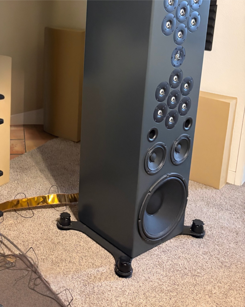 - Speakers: Tekton Ulbert 15 floorstanders (about 80 inches tall, roughly $10,000 pair; equipped with ceramic tweeters that rival beryllium in most of the range, plus custom crossovers using Mundorf Supreme Evo capacitors, Path Audio resistors, and upgraded wiring — a significant upgrade from stock).
